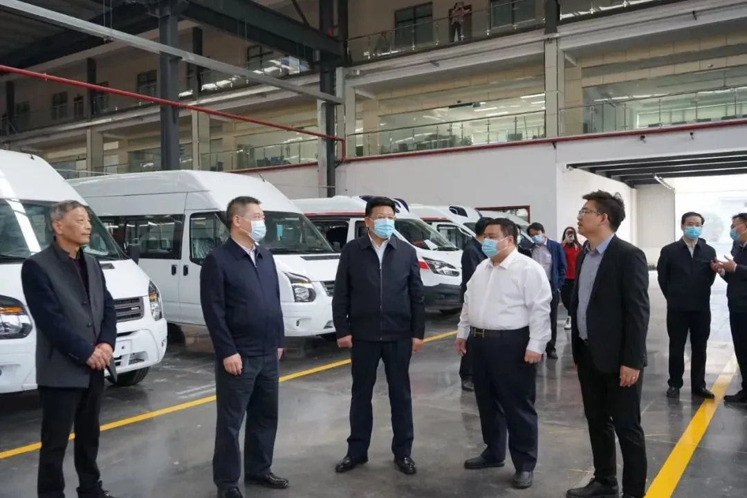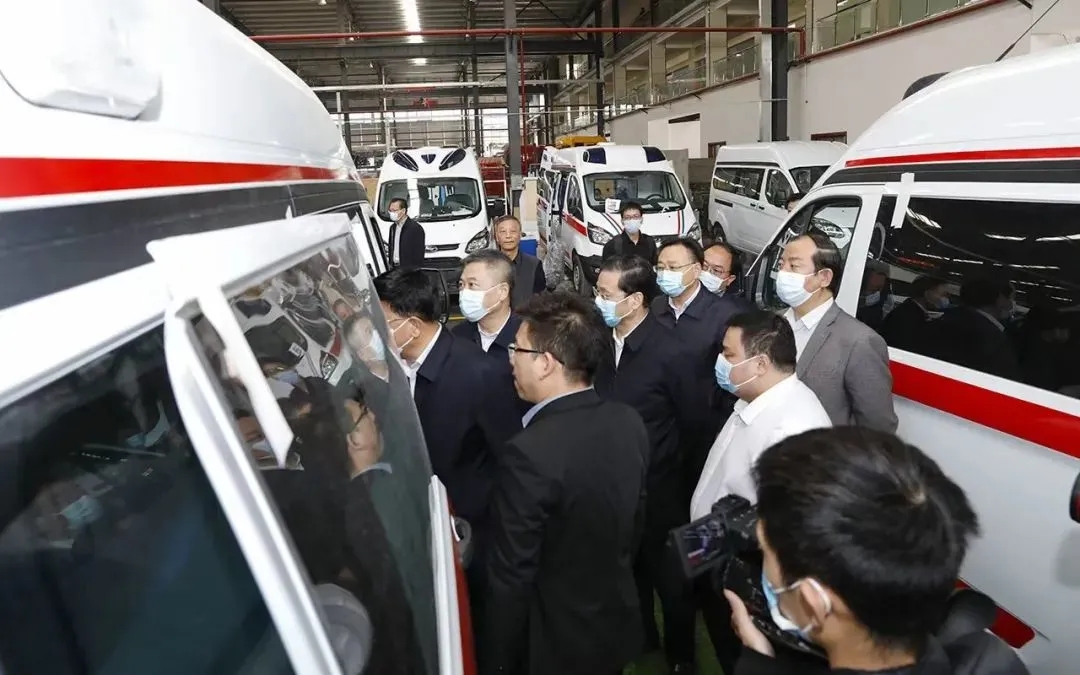 王贺胜主任等领导嘉宾,先后视察参观了程力医疗救护车厂、医疗转运装备车厂、救援车厂等医疗应急装备制造车间,对生产工艺进行了现场了解调研。