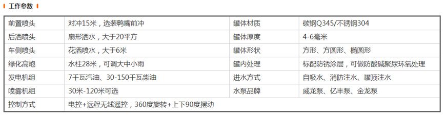 国六东风T5后双桥18吨抑尘车上装配置:容积18方,罐体采用国标QZ35碳钢材质,罐体厚度4MM,前后封头SMM加厚型,罐体内双层隔板具有防波荡作用,以减轻汽车行驶时灌内液体冲击:洒水车整车及外形尺寸严格按照国家机动车公告制作而成厂装配大功率专用洒水泵,前冲、后洒、侧喷、后平台带绿化洒水炮,洒水炮可全方位旋转,可连续调成直冲状、大雨、小雨、毛毛雨二配肖防接口,自流阀,滤网,带自吸自扫助能。前封头带水位计,后平台主管路带1寸浇花接口。后爬梯,带l个消防接头,带1个自流阀。1个过滤装t.其余标配。1、可选装后平台带雾炮机组用于喷雾降尘、农药喷洒作业:2、可选装前置电子洒水炮驾驶室操作;3、可选装气动角闷驾驶室操作。